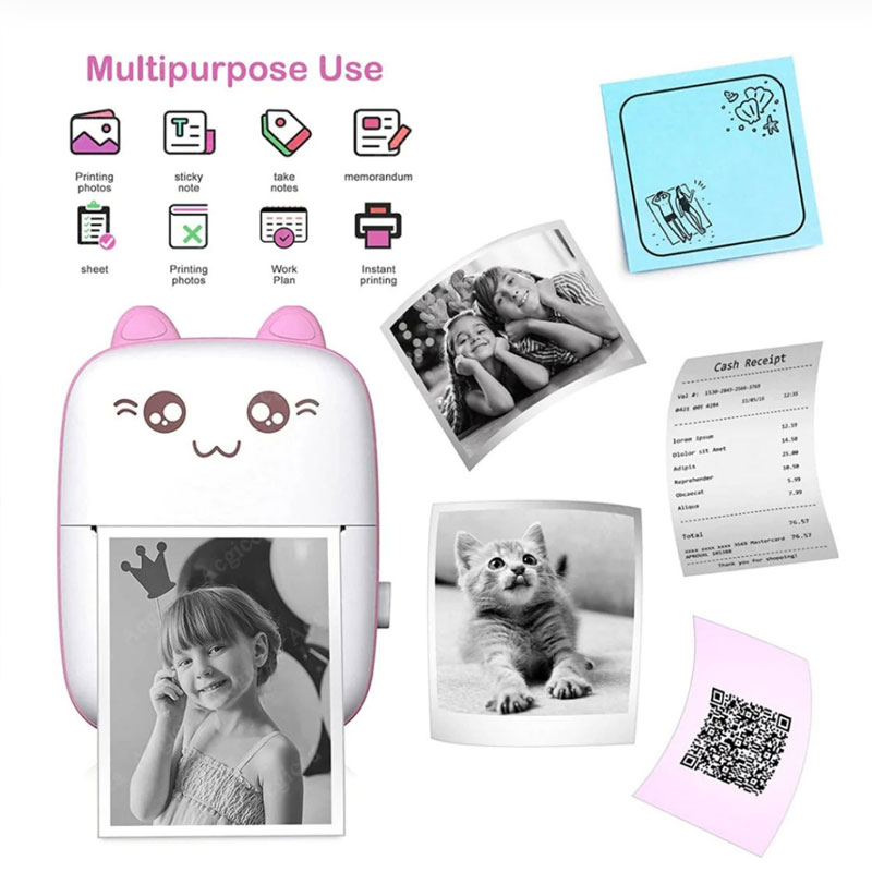 - Soporta tanto papel térmico ordinario como pegatinas de impresión autoadhesivas. La impresora fotográfica portátil para teléfono no necesita cartucho de tinta mientras úsala impresora mini smartphone con resolución de 200 pdi